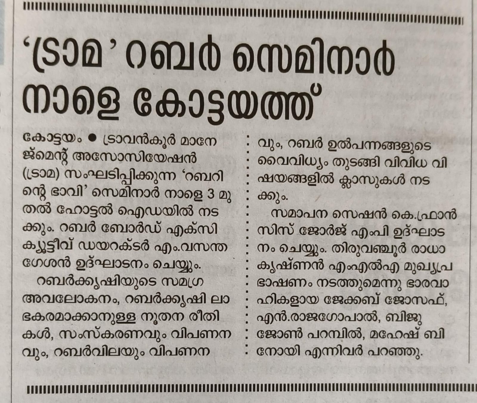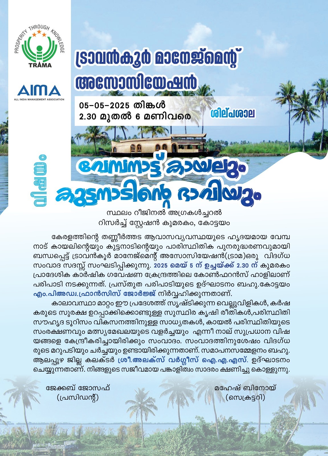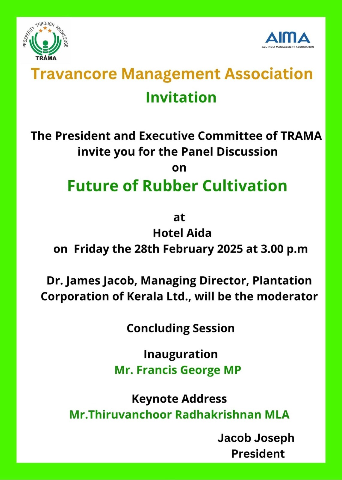 With the blessings and presence of the Late Dr. APJ Abdul Kalam and as a Local Management Association of All India Management Association (AIMA), TRAMA started its journey on 4th February 2008 through the management opportunities of its members with the motto 'Prosperity through Knowledge'. TRAMA has carried out umpteen projects and programs that benefit our members, student members, and society as a whole. We have been instrumental in providing timely updates on the management sector and in conducting knowledge-sharing seminars and sessions with the help of some of the management experts from around the world.